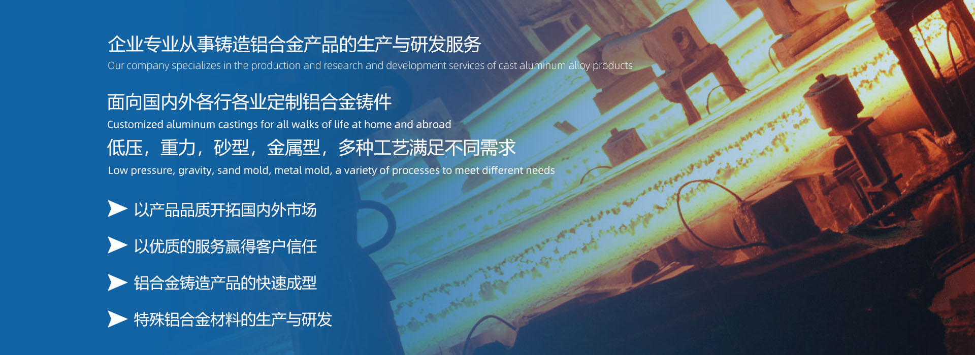 本公司致力于引進(jìn)先進(jìn)的鋁合金新材料和鑄造技術(shù)理念及標(biāo)準(zhǔn),專注于鋁合金鑄造產(chǎn)品開(kāi)發(fā)、生產(chǎn)和服務(wù),緊緊圍繞技術(shù)創(chuàng)新,為客戶提供滿意的技術(shù)服務(wù)及優(yōu)質(zhì)可靠的產(chǎn)品。堅(jiān)持以鋁合金鑄造加工生產(chǎn)和服務(wù)為主體,建立、實(shí)施并持續(xù)改進(jìn)質(zhì)量管理體系,為增強(qiáng)顧客滿意不懈努力。產(chǎn)品廣泛應(yīng)用于特高壓電氣組件、醫(yī)療器械、藥品包裝機(jī)械、汽車零部件、空壓機(jī)部件、高速機(jī)床、能源裝備及軍工部件等領(lǐng)域。